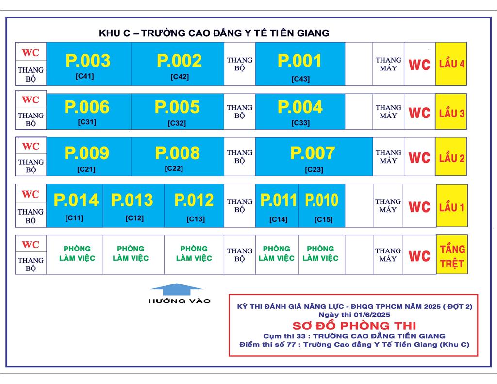 Sơ đồ phòng thi khu C – Điểm thi 77 – Trường Cao đẳng Y tế Tiền Giang