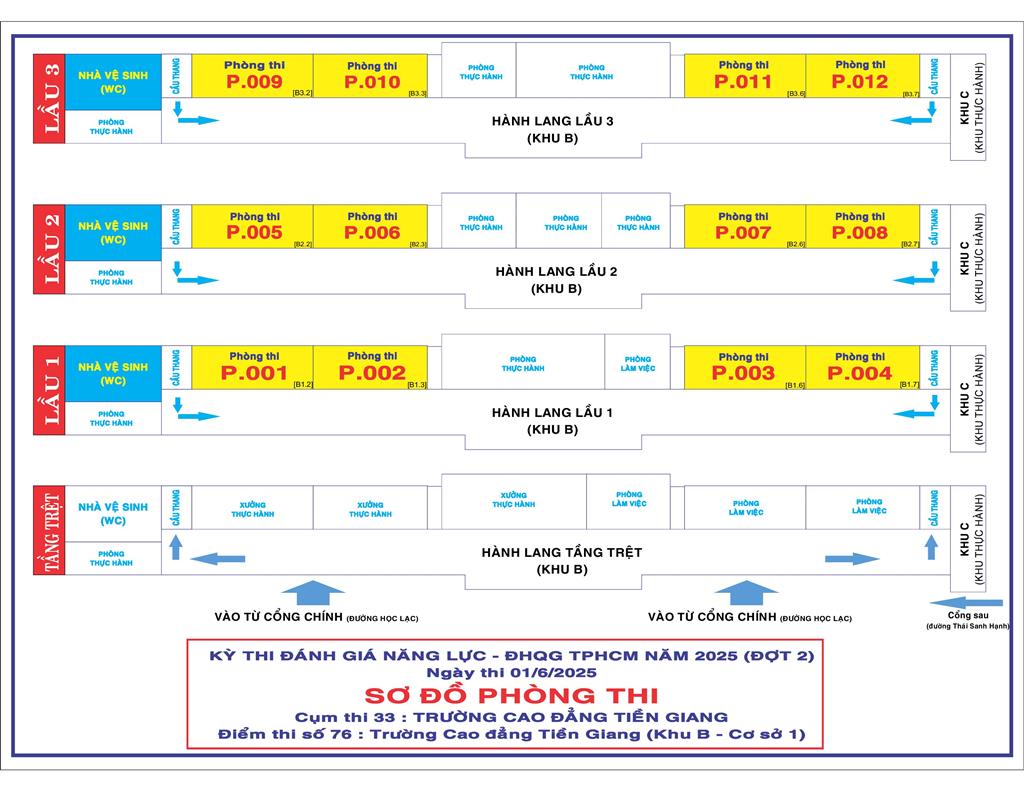 Sơ đồ phòng thi khu B – Điểm thi 76 – Trường Cao đẳng Tiền Giang
