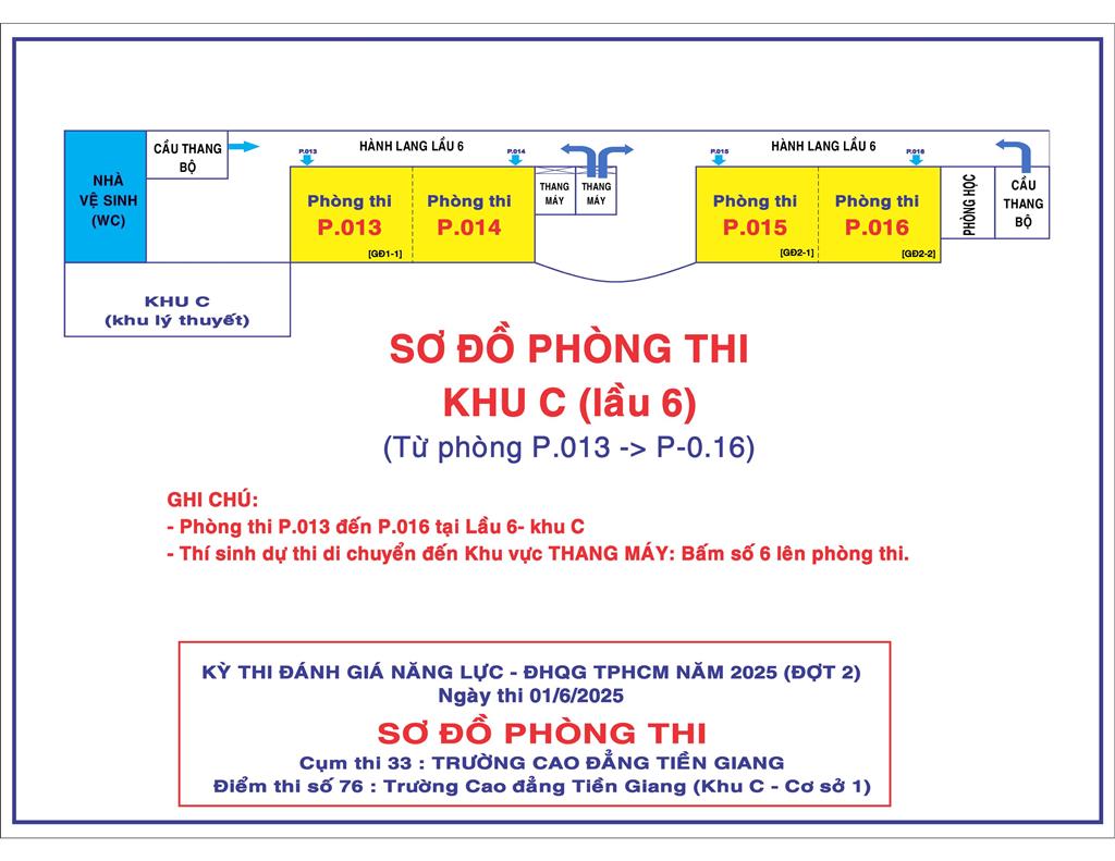 Sơ đồ phòng thi khu C – Điểm thi 76 – Trường Cao đẳng Tiền Giang