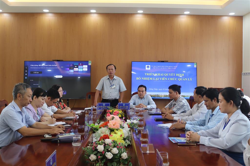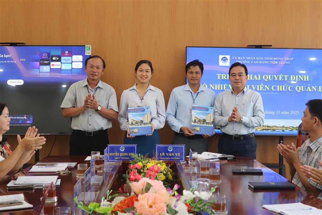 Ngày 03/11/2025, Trường Cao đẳng Tiền Giang đã tổ chức Lễ triển khai Quyết định bổ nhiệm lại viên chức quản lý đối với 02 thầy cô thuộc Phòng Quản lý Đào tạo và Khoa Cơ Khí – Xây dựng gồm: Cô Phạm Ngọc Hoa Mai – Phó phòng Quản lý Đào tạo và thầy Mạch Xuân Lễ - Trưởng Bộ môn Xây dựng. Thời gian giữ chức vụ của các thầy cô nói trên là 5 năm kể từ ngày 01/11/2025.