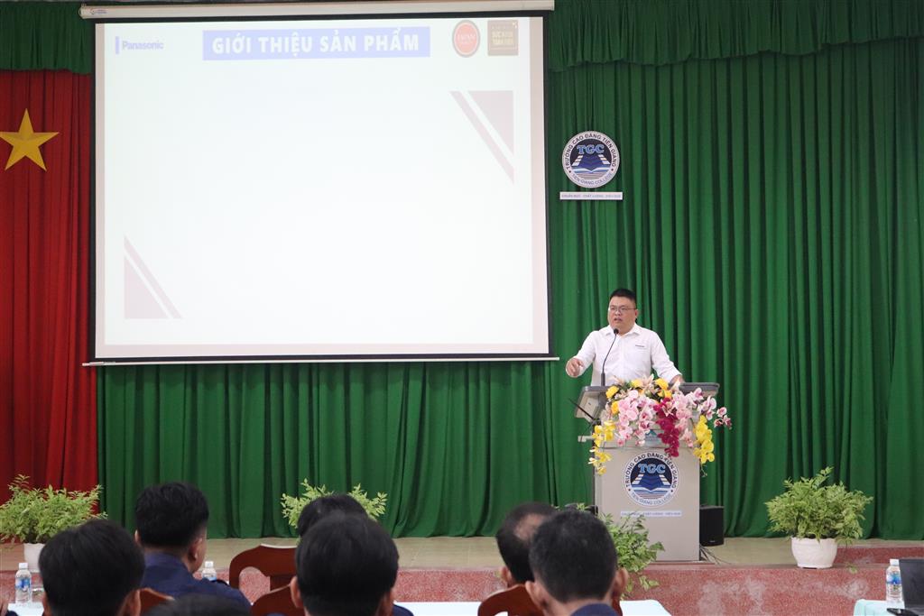 Buổi đào tạo có sự tham dự của thầy Nguyễn Quang Khải – Phó Bí thư Đảng ủy, Hiệu trưởng nhà trường; Ông Võ Văn Hoàng - Trưởng phòng kỹ thuật thiết kế - Công ty TNHH Panasonic Việt Nam; thầy Văn Bá Cường – Trưởng Khoa Điện – Điện tử cùng với đội ngũ kỹ thuật viên dịch vụ kỹ thuật của Chi nhánh Công ty TNHH Panasonic Việt Nam, các thầy thuộc khoa Điện – Điện tử và các học sinh, sinh viên đang theo học tại khoa Điện – Điện tử.