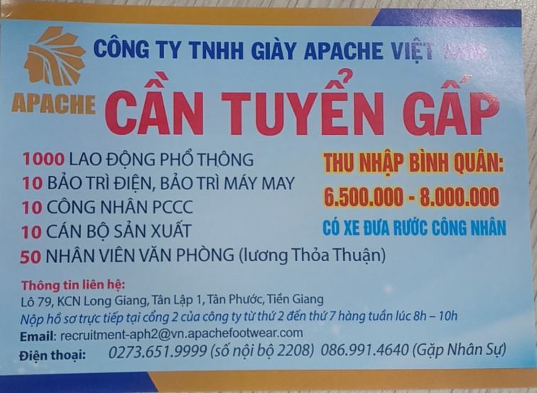 Công ty TNHH giày APACHE Việt Nam tuyển dụng