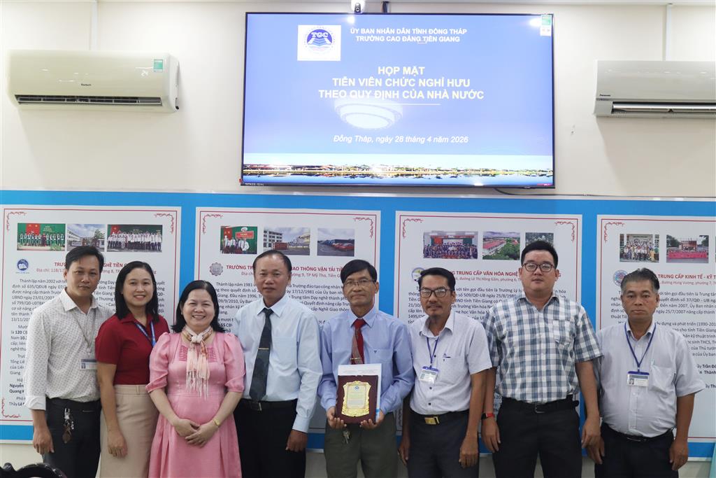 Nhằm tri ân những cống hiến và đóng góp của cán bộ viên chức đối với sự nghiệp xây dựng và phát triển của Nhà trường, sáng ngày 28/4, tại Phòng Truyền thống, nhà trường đã tổ chức buổi họp mặt tiễn thầy Dương Văn Kiệt - Nhân viên Phòng Công tác chính trị và HSSV nghỉ hưu theo quy định của Nhà nước.